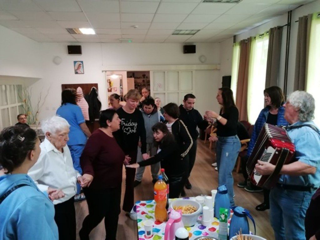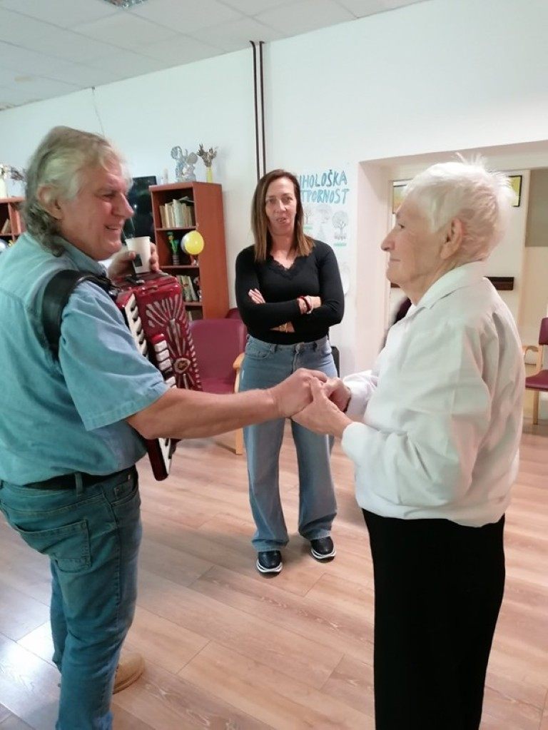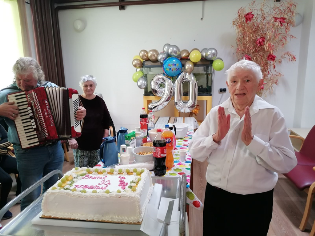 U veseloj i rasplesanoj atmosferi Doma za odrasle osobe Nedešćina, 09.listopada 2025. proslavljen je 90. rođendan naše najstarije korisnice u našem Domu, naše drage Marije. Proslavi njezinog rođendana pridružili su nam se dragi prijatelji iz Centra za inkluziju Labin i g. Renco, naš dragi harmonikaš koji se rado odazvao kako bi svojom svirkom i pjesmom uljepšao ovu rođendansku proslavu i zajedničko druženje.